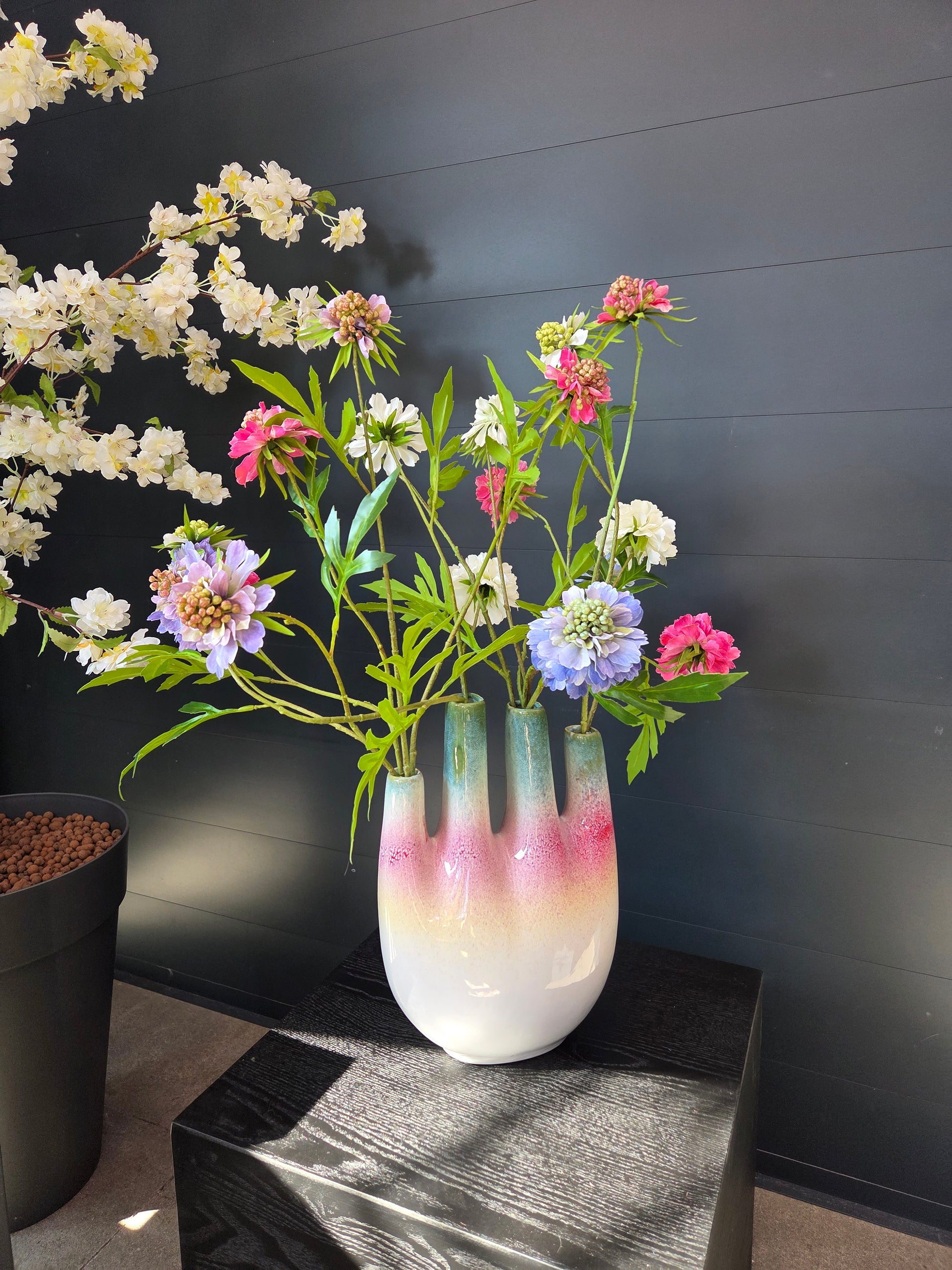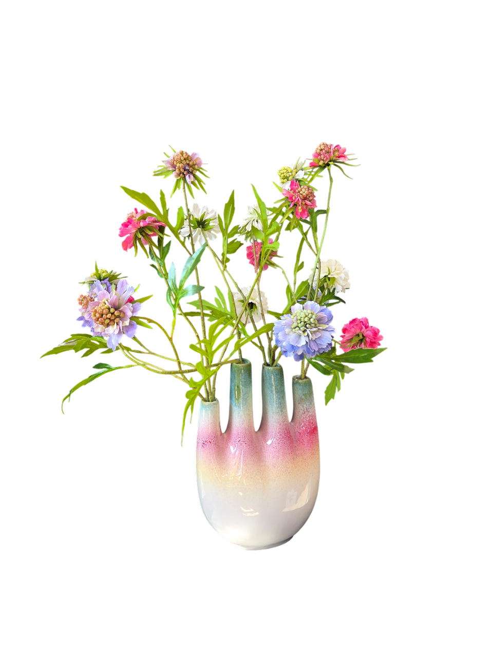 Wist je dat?: Duifkruid, scambiosa, is een vaste plant uit de kamperfoeliefamilie. De soort staat helaas op de Nederlandse Rode lijst van planten als zeldzaam en zeer sterk in aantal afgenomen. Vlinders en bijen zijn dol op deze plant! Met deze zijden variant kan jij genieten van dit uitzonderlijke plantje.