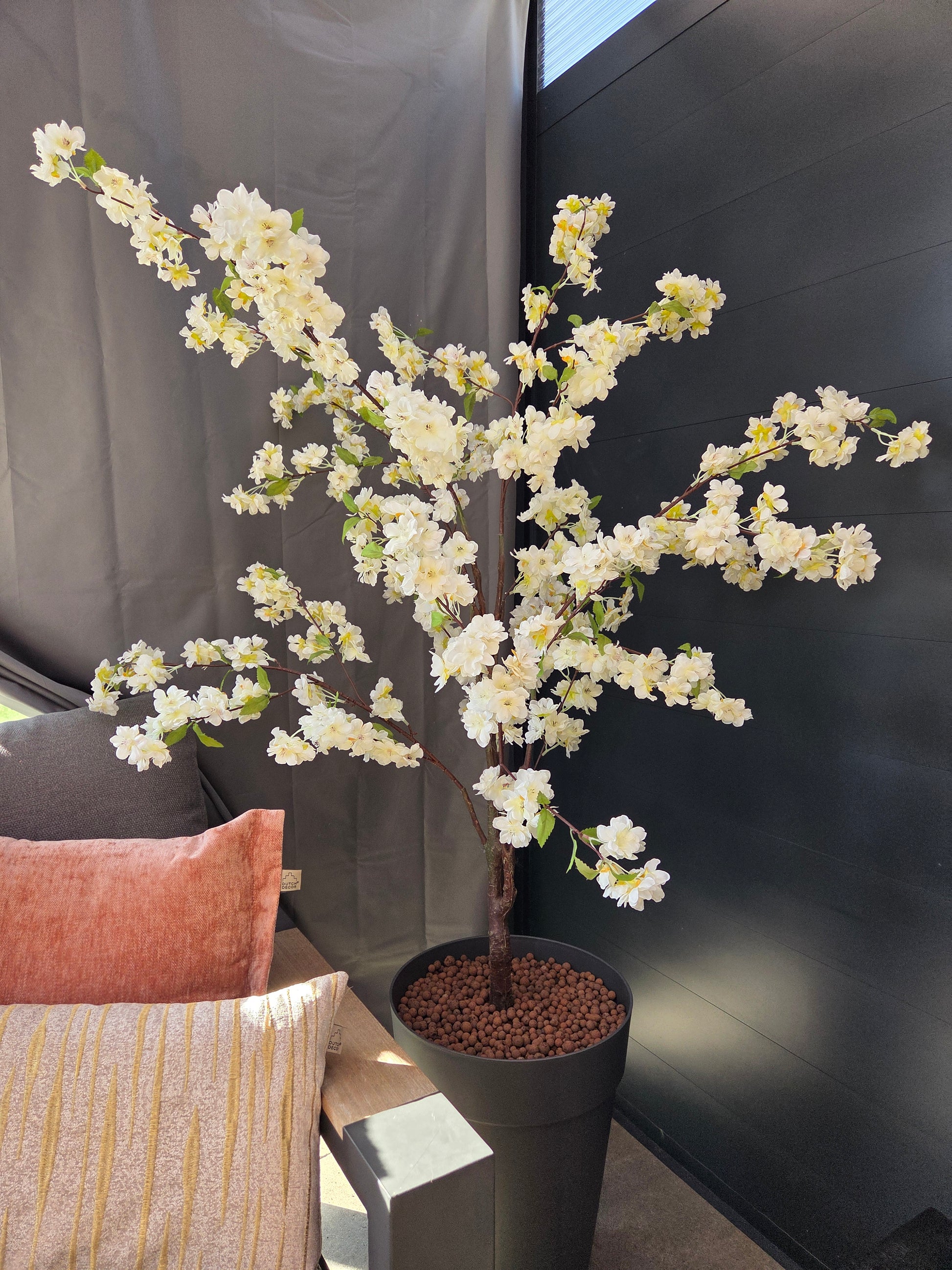 Deze prachtige boom met kunstbloesems staat overal prachtig ongeacht welke stijl interieur. Bloesems worden in Japan gezien als een mensenleven, kort en mooi. Dit vanwege hun korte bloei van ongeveer 2 weken per jaar. Hoe mooi is het dat je hier nu het hele jaar door van kan genieten middels deze kunst variant!