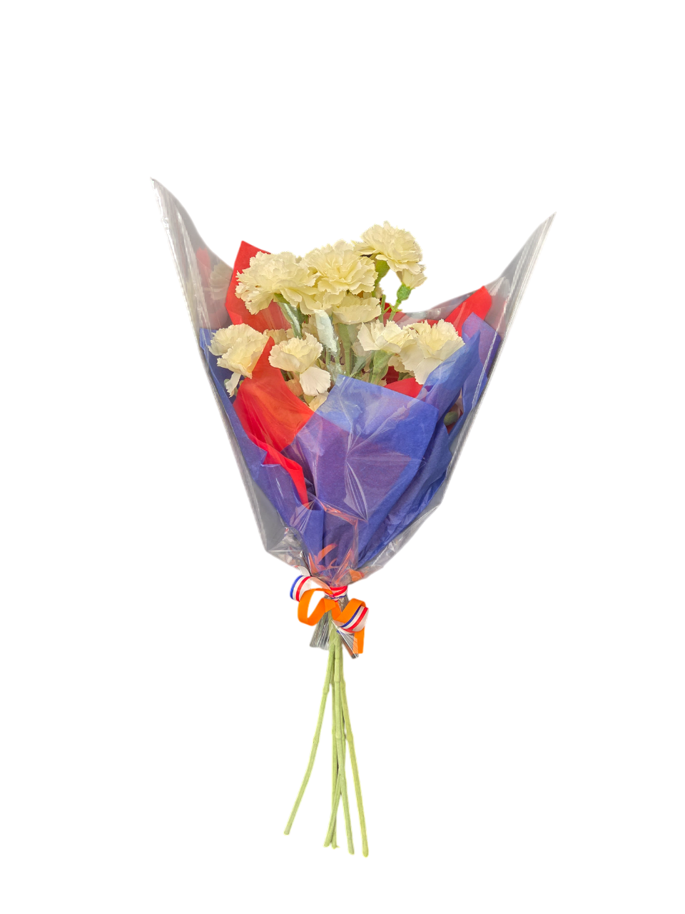 Dit kleine boeket mag daarom ook niet ontbreken! Het bestaat uit 5 takken anjers, zorgvuldig ingepakt in de nationale driekleur.