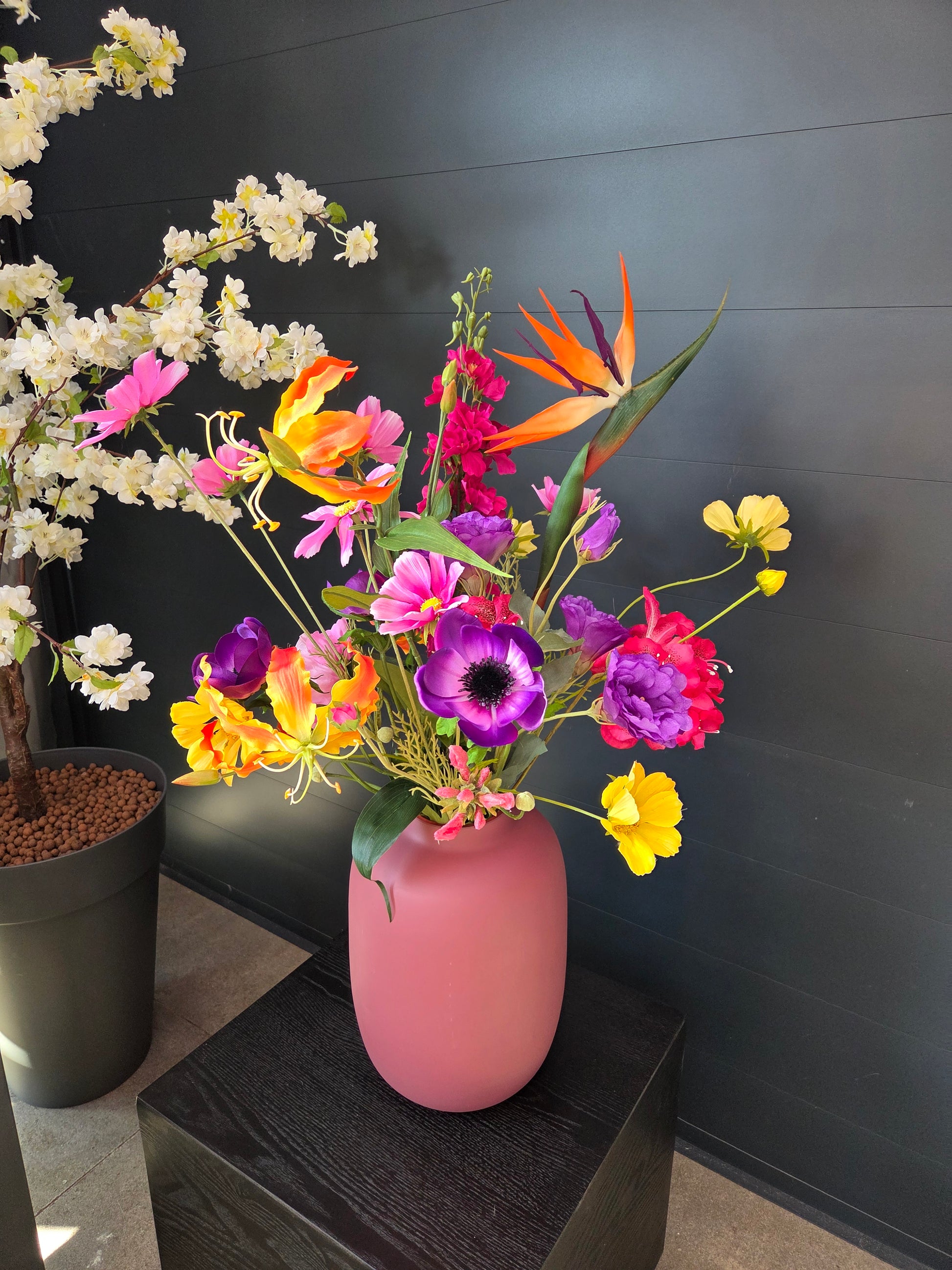 Boeket Kleurrijk doet haar naam eer aan. Het boeket is opgebouwd uit verschillende kleurrijke bloemen om zo een knaller in jouw interieur te zijn. Kleurrijk, bont, vrolijk, maar ook chic te combineren met een mooie matte vaas uit onze collectie. Als dit geen eye-catcher is weten wij het ook niet meer!